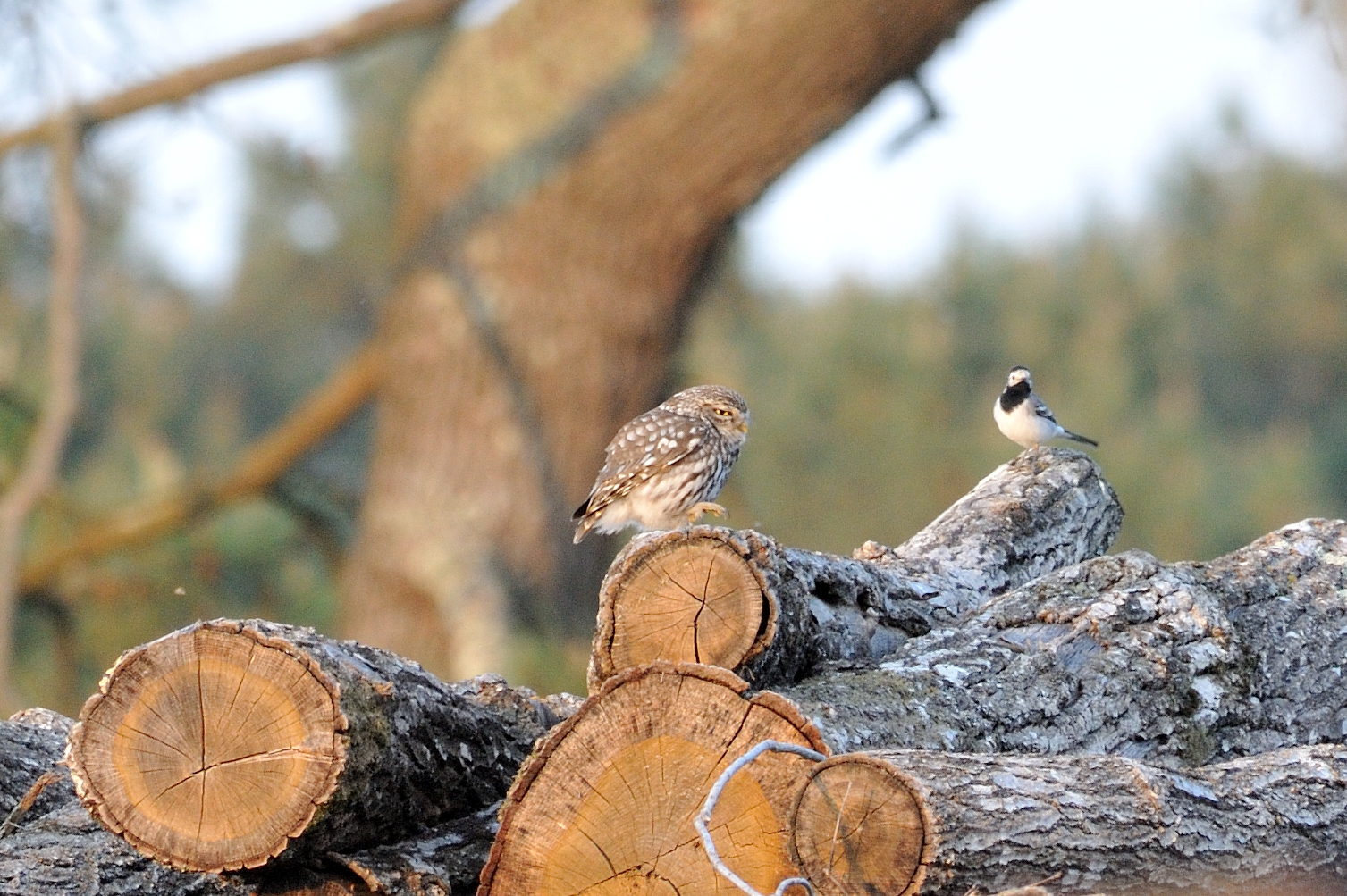 Chouette chevêche et Bergeronnette grise (Athene noctua & Motacilla alba)