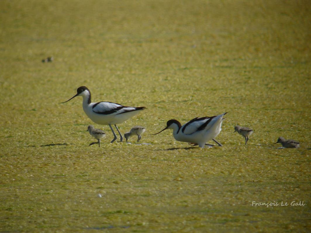 Famille d'avocettes en déplacement