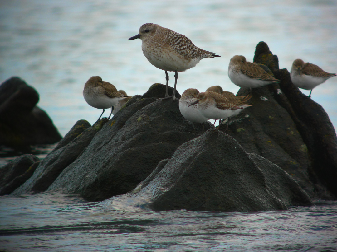 Bécasseaux variables (Calidris alpina) et Pluvier argenté