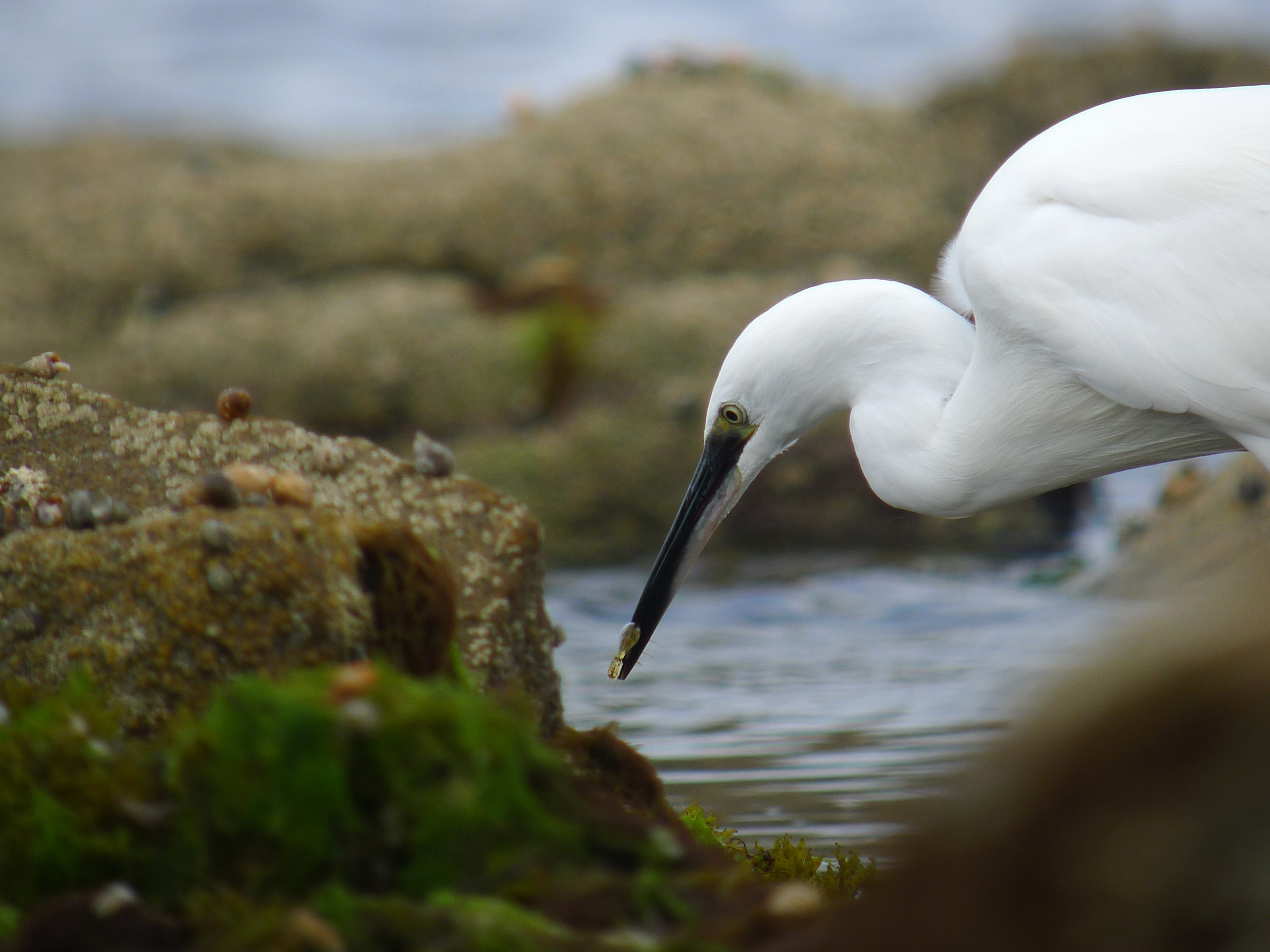 Capture de Crevette grise pour l'Aigrette garzette